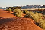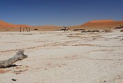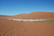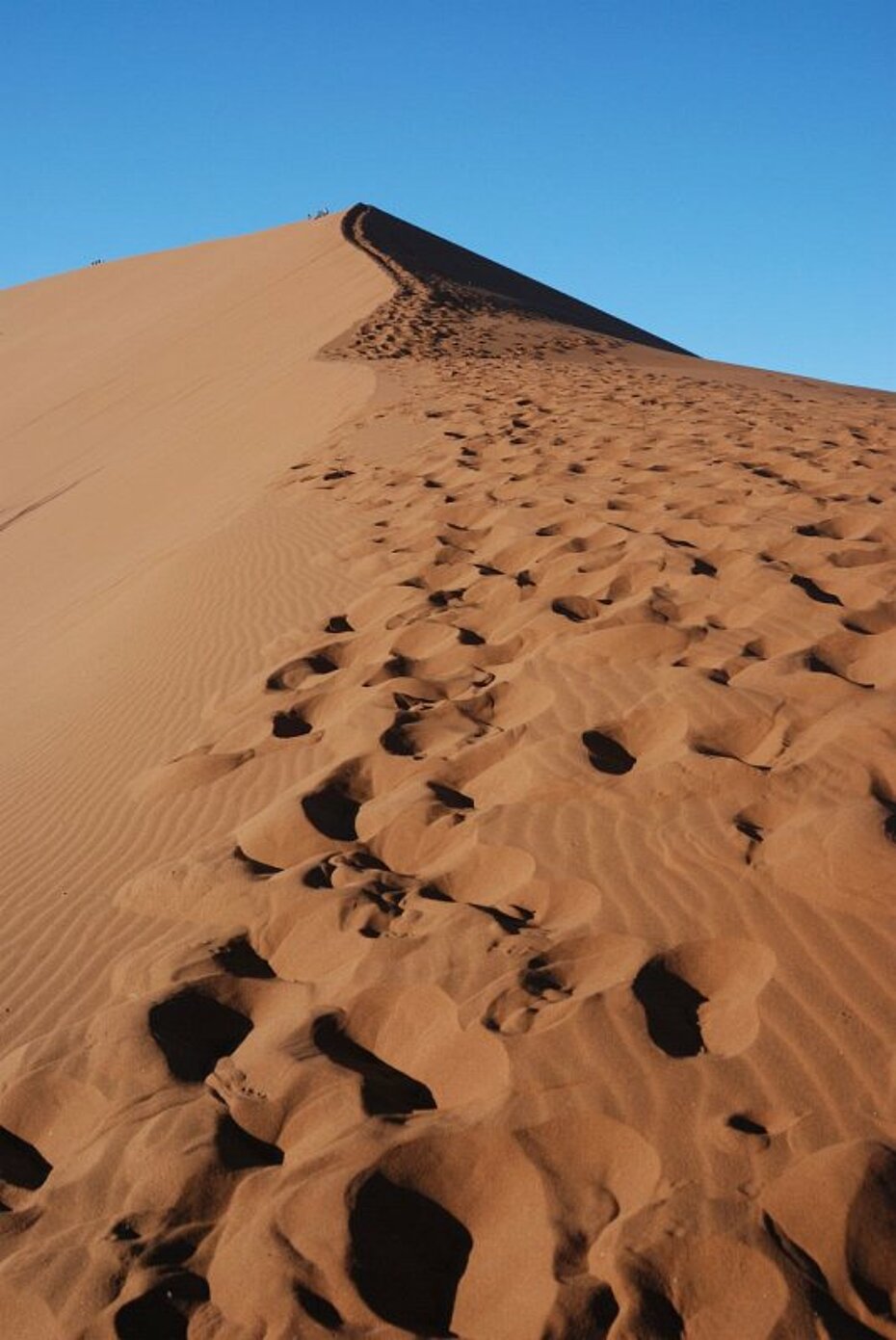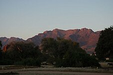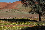 Der nächste Tag war ein Tagesausflug zum Sossusvlei . Die bekannten roten Dünen dürfen bei keiner Reise in Namibia fehlen und natürlich auch hier nicht. Ungewöhnlich viel Regen im Vorfeld sorgte dafür, dass das rot immer wieder durch grün und Blumen unterbrochen wurde, selbst am dead vlai grünte es. Die abgestorbenen Bäume sind viele hundert Jahre alt, konserviert durch das Klima in dieser Ton-Ofanne. Wer wollte konnte die benachbarten Dünen besteigen, aber angesichts der Steigung und den Temperaturen gibt es durchaus schönere Beschäftigungen.
