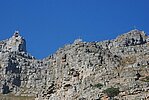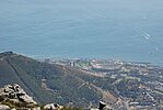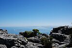 Am nächsten Tag standen dann die Sehenswürdigkeiten Kapstadts auf dem Programm. Zuerst der Tafelberg. Mein Ehrgeiz ihn zu Fuß zu erklimmen schwindet schon schnell am Anfang, da es leider kein ansteigender Weg ist, sondern eher eine lange Treppe aus hohen Steinstufen. Mich an jeder Stufe hinaufzuheben, das machen die Knie nicht mit und so kehre ich reumütig um und laufe den Weg zurück zur Seilbahnstation und dann, wie andere Reiseteilnehmer, die schon vorab klüger waren, hochzufahren. Aber auch nach mir kehren noch ein paar um und so war ich wenigstens der erste Einsichtige. Bei der Fahrt hinauf dreht sich die Gondel einmal um die eigene Achse und so bekommt jeder einen Rundumblick auf den Berg und Kapstadt. Oben angekommen geniesen wir die Aussicht und warten auf die Wanderer bevor es gemeinsam nach unten geht und weiter zum nächsten Highlight.