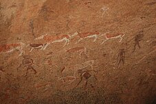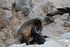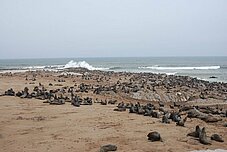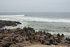 Weiter ging es am nächsten Morgen zum Besuch einer Seelöwen-Kolonie am Cape Cross. Der Lärm und Gestank der tausenden von Seelöwen war schon einprägsam. Die Nacht verbrachten wir an der Spitzkoppe bevor wir dann am nächsten Tag zu den Felsmalereien am Brandberg wanderten. Die bekannteste davon ist die white lady, die eigentlich keine weiße Dame ist, sondern es sich um einen bemalten Krieger oder Schamanen handelt. Die Nacht verbrachten wir am Fuße des Brandberges und lernten die Haus-Erdmänchen dort kennen.