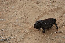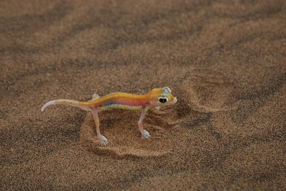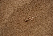 Der Tag in Swakopmund begann früh mit einem Ausflug in die Wüste mit einem lokale Führer. Schnell stellte sich heraus, dass alle Teilnehmer deutsch sprachen und so wechselte auch der guide die Sprache und das ganze fand auf Deutsch statt. Es ist beeindruckend wieviel Leben es in der Wüste gibt, wenn man weiß wo man danach suchen muss. Die Chamäleons kannten den guide schon und kamen zum Vorschein, wenn sie das Auto hörten um sich mit Würmern füttern zu lassen. Der kleine Gecko verriet sich jedoch durch ein kleines Loch im Sand und wurde vom guide ins freie befördert, damit wir seine schillernden Farben bewundern konnten. Aber nur kurz, dann durfte er sich wieder in den schützenden Sand verkriechen. Bei der Schlange, die er als nächstes ans Tageslicht beförderte hielten wir mehr Abstand, aber auch sie durfte sich kurz danach wieder einbuddeln. Mineralien im Sand sorgen für die unterschiedlichen Färbungen, ein Teil davon wird dadurch sogar magnetisch. Auch viele Pflanzen haben sich an das Wüstenklima angepasst.